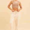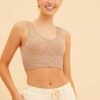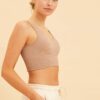 Beige Seamless Tank Top Scoop Neck Rib Crop