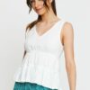 Features: Tiered Design, V Neckline, Relaxed Fit, Frill Detail